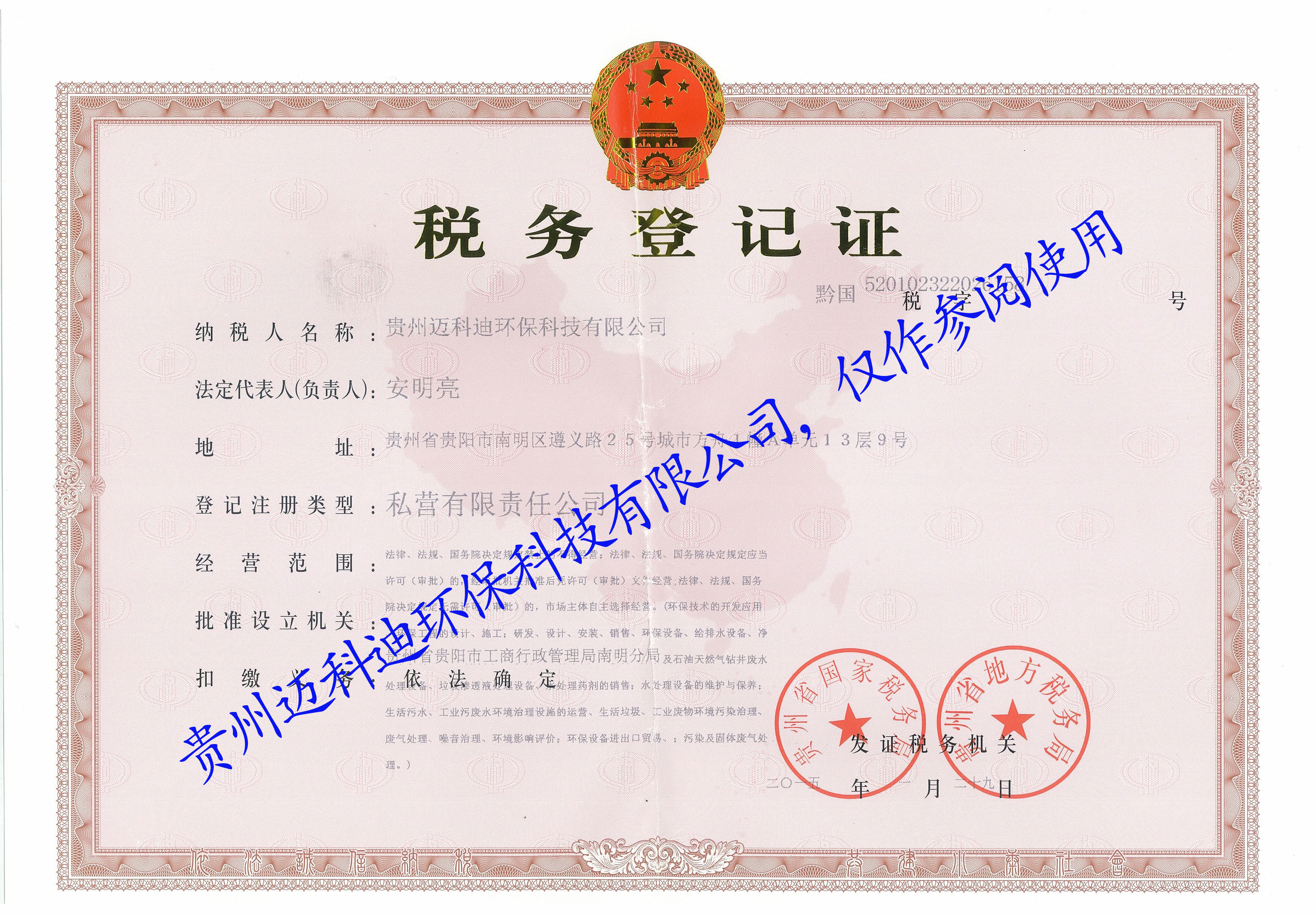 • 稅務(wù)登記證