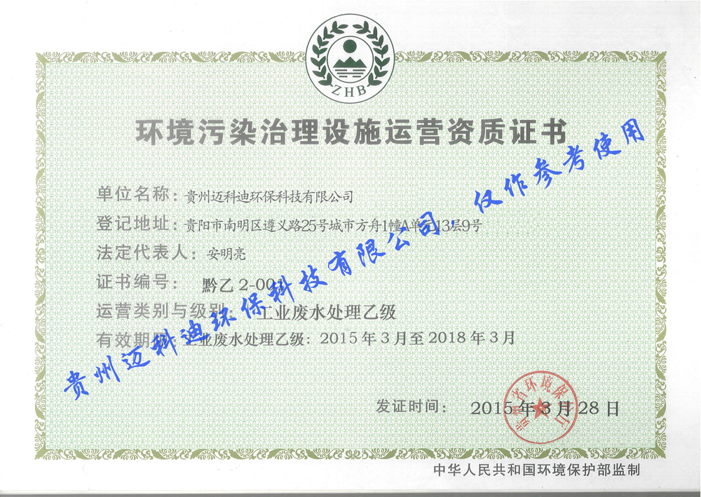 貴州邁科迪環(huán)保科技有限公司,是貴州省一家大型的綜合水處理設(shè)備公司,公司集純水,超純水,污水,工業(yè)廢水工程的設(shè)計,制作,安裝,調(diào)試,售后服務(wù)以及水處理設(shè)備技術(shù)和配件的研發(fā),生產(chǎn),銷售等于一體的大型環(huán)保專業(yè)化生產(chǎn)企業(yè)。本公司擁有高壓脈沖電絮凝水處理技術(shù)。在重金屬廢水處理,焦化廢水處理,磷化廢水處理,制藥廢水處理,皮革廢水處理,化工廢水處理,電鍍廢水處理,石油天然氣鉆井廢水處理等領(lǐng)域,取得了驕人的成績。公司經(jīng)過多年的研究實踐,制研發(fā)出一體化工業(yè)廢水處理設(shè)備,一體化電子高壓脈沖電絮凝設(shè)備...